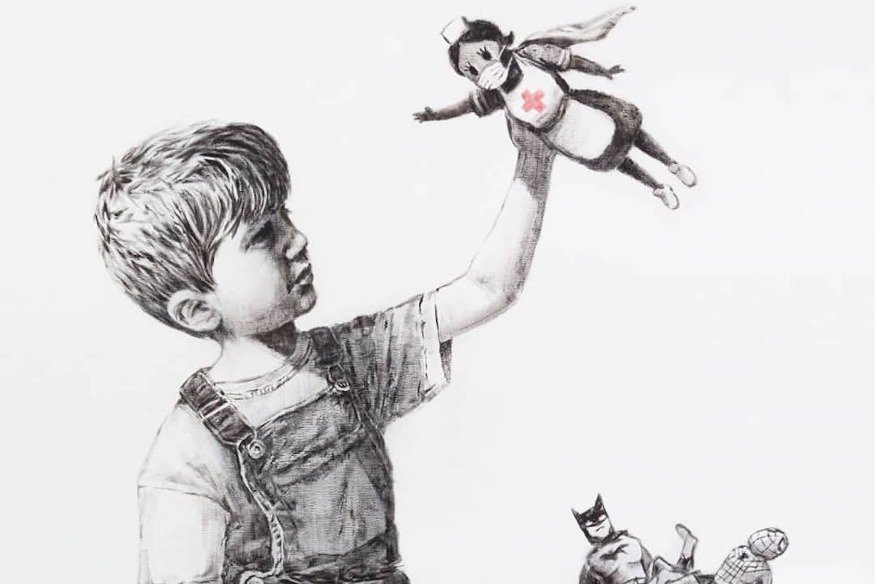 Vous connaissez sans doute le célèbre bien qu’anonyme Banksy, artiste de street art qui a l’habitude de faire fleurir ses œuvres de graffeur un peu partout dans le monde, la plupart du temps poétiques et politiquement ou socialement engagées. Il est aujourd’hui un acteur majeur de la scène mondiale de street art et les messages qu’il émet ont très souvent une portée incroyable.