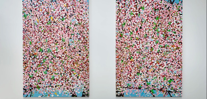 « Cerisiers en fleurs » est le nom de l’exposition de peinture de Damien Hirst qui fleurit les murs de la fondation Cartier pour l’art contemporain. « Je voulais qu’on ait l’impression de regarder un arbre par en dessous, qu’il n’y ait plus de gravité, comme sous une canopée », explique l’artiste aux œuvres vertigineuses.