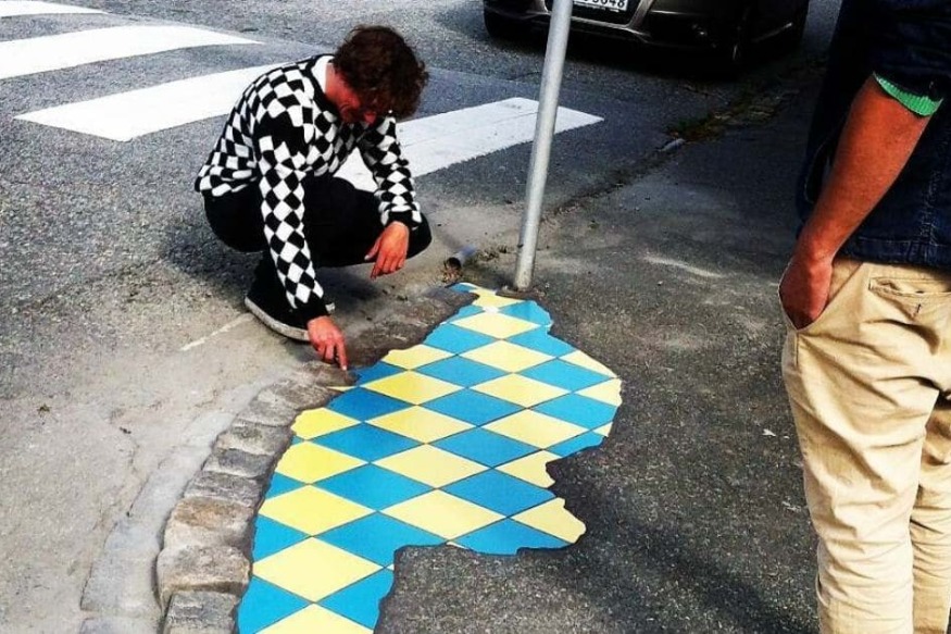 Depuis trois ans, il a conféré au street art une dimension sociale en se chargeant de transformer nids de poule et trous dans les trottoirs en oeuvre d'art, et cela en les couvrant de mosaïques de couleur (technique du "flacking") qui donnent à la rue un petit air de joie bienvenu ! Ses outils ? Des morceaux de faïence et de carrelage qu'il récupère ça et là, au gré de ses balades, et à qui il offre une nouvelle vie,......