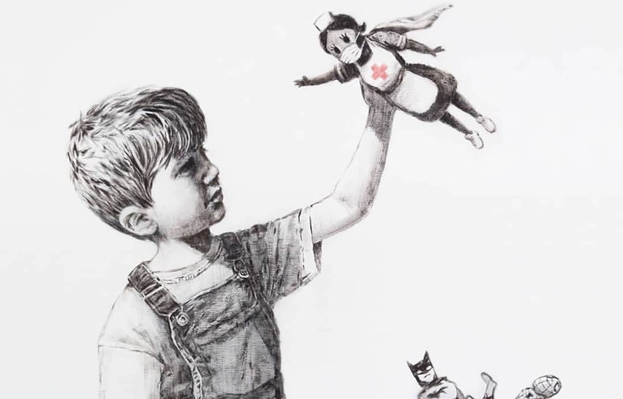 Déjà très impliqué après une prise de parole sur le confinement et ses essais de « street art à la maison », il vient de dévoiler sa dernière œuvre : un dessin qui résonne comme un véritable et vibrant hommage aux personnels de santé qui luttent contre le coronavirus en Grande-Bretagne. Il y montre un jeune garçon qui a mis au rencart les fausses idoles que sont Batman et Spiderman (dont les figurines sont négligemment jetées à la poubelle), pour finalement jouer avec la figurine d’une infirmière masquée ! La consécration des nouveaux super-héros de notre temps !