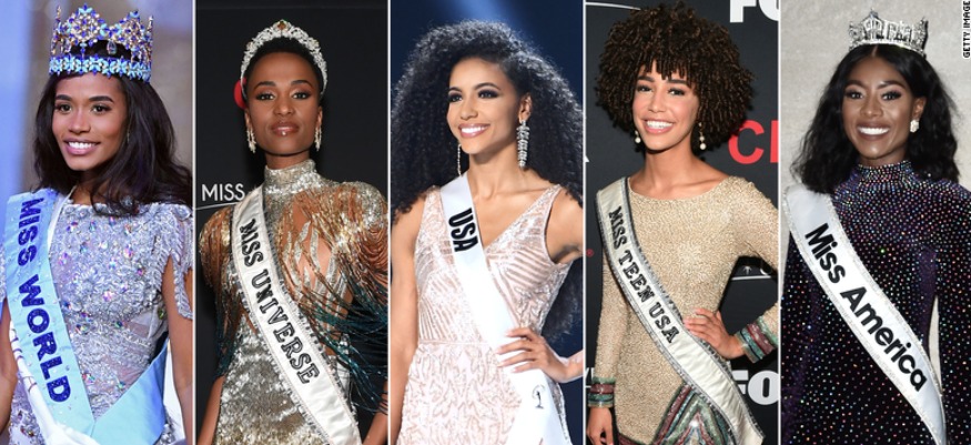 Ainsi, quand la Jamaïcaine Toni-Ann Singh a été couronnée Miss Monde samedi 14 décembre à Londres, elle a rejoint Cheslie Kryst (Miss USA 2019), Kaliegh Garris (Miss Teen USA 2019), Nia Franklin (Miss Amérique 2019) et Zozibini Tunzi (Miss Univers 2019). Sans oublier notre Miss France 2020, Clémence Botino !